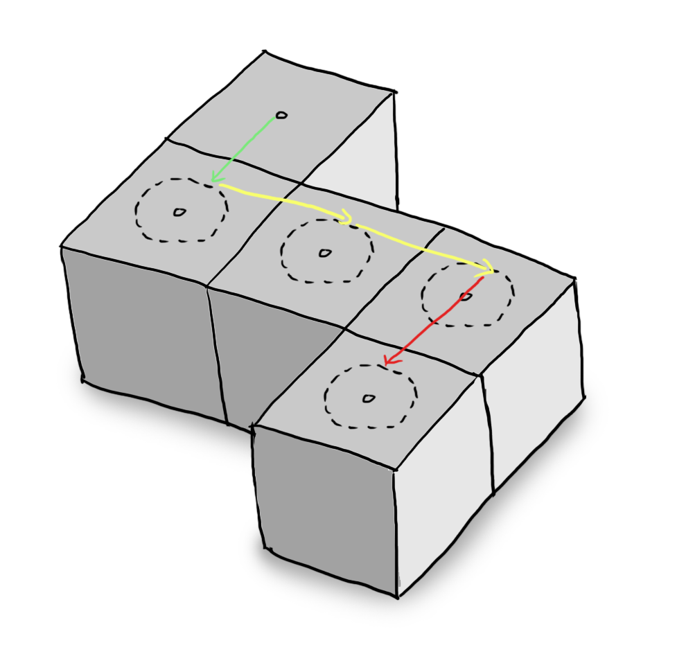 먼저 Controller에서 입력을 받으면 MovementComponent가 입력을 수신하고 Queue에 저장한다. 매 프레임 Queue를 검사하고 첫번째 방향으로 이동한다. 그런데 이렇게하니까 몇가지 문제가 발생했다. 원하는 지점에 도착한지 검사하기 위해서 일정 범위 안에 들어오면 도착했다고 판단하도록 했는데, 도착하자마자 Queue에서 입력을 제거해버리니까 경계선에서 캐릭터가 급정거해버린다. 또 여기에서 다음 방향으로 이동하도록 지시하면 오차가 누적되어서 결국 목적지에 도달하지 못하는 상황도 발생한다.
